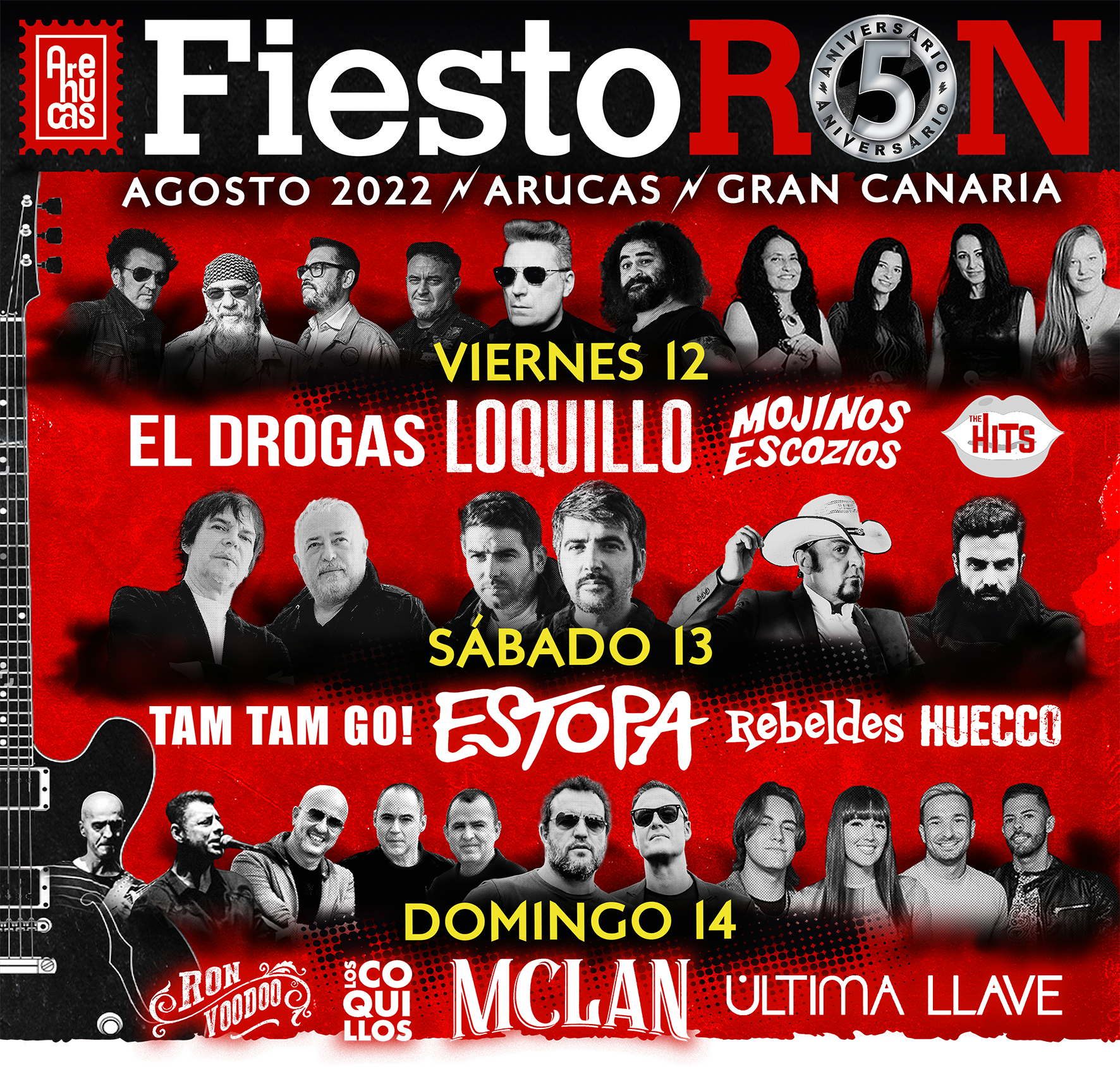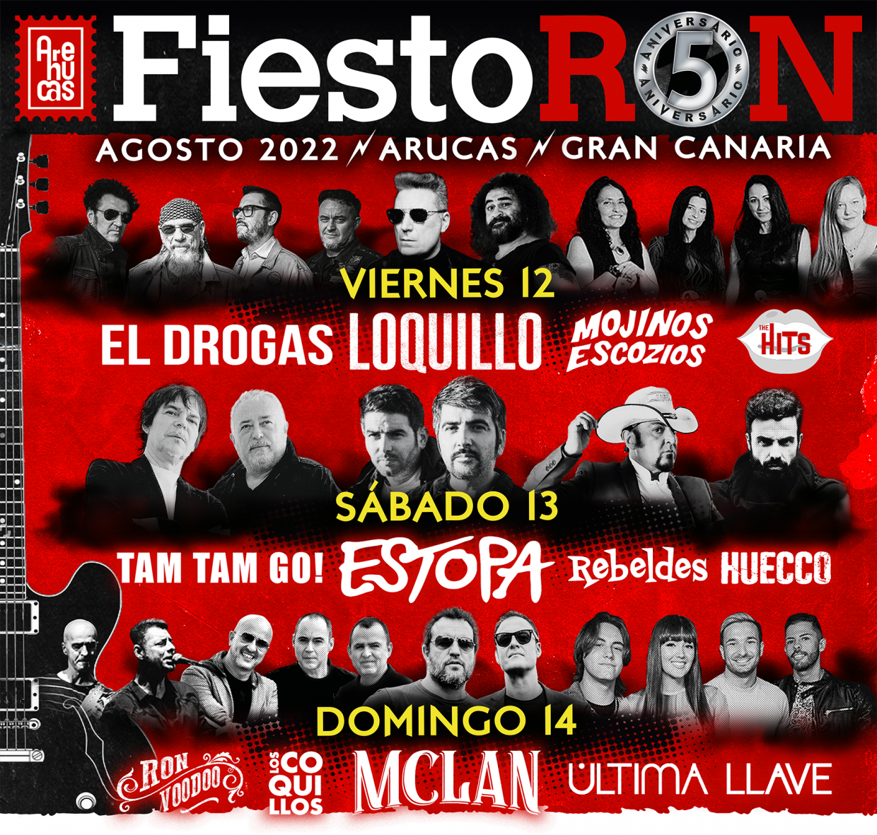 5 años ya de este festival de renombre en Gran Canaria, el FiestoRon. Como cada año, se celebra en Arucas, a los pies de su catedral se reúnen bandas locales y foráneas en la fiesta del rock por excelencia de la isla.