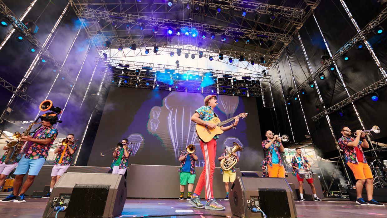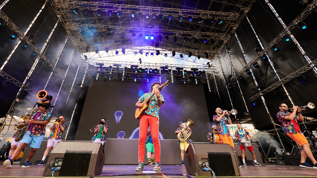 La segunda jornada del festival comenzó con St. Pedro y siguió con el cachondeo y el bueno rollo que transmiten el gran Arístides Moreno acompañado de la 101 Brass Band, que aunque los pongan en chiquitito en el cartel, ellos son grandes, pero GRANDES con mayúsculas.