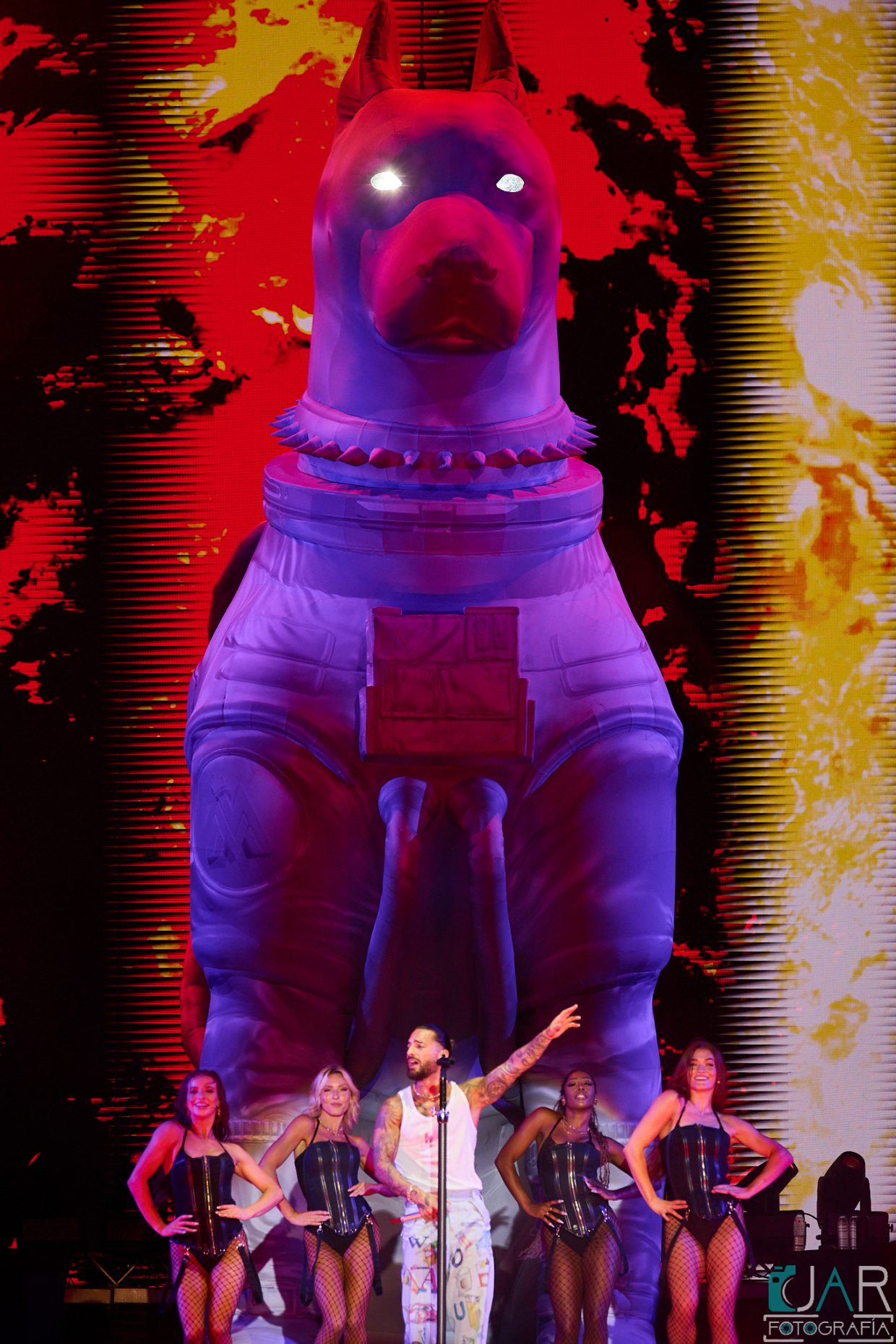 Maluma llegó y venció, un gran can en el espacio central del escenario fue testigo de cómo el público no le «hacía falta ná, aparentemente ná» para disfrutar de su directo, solo dejarse llevar y vivir el momento.