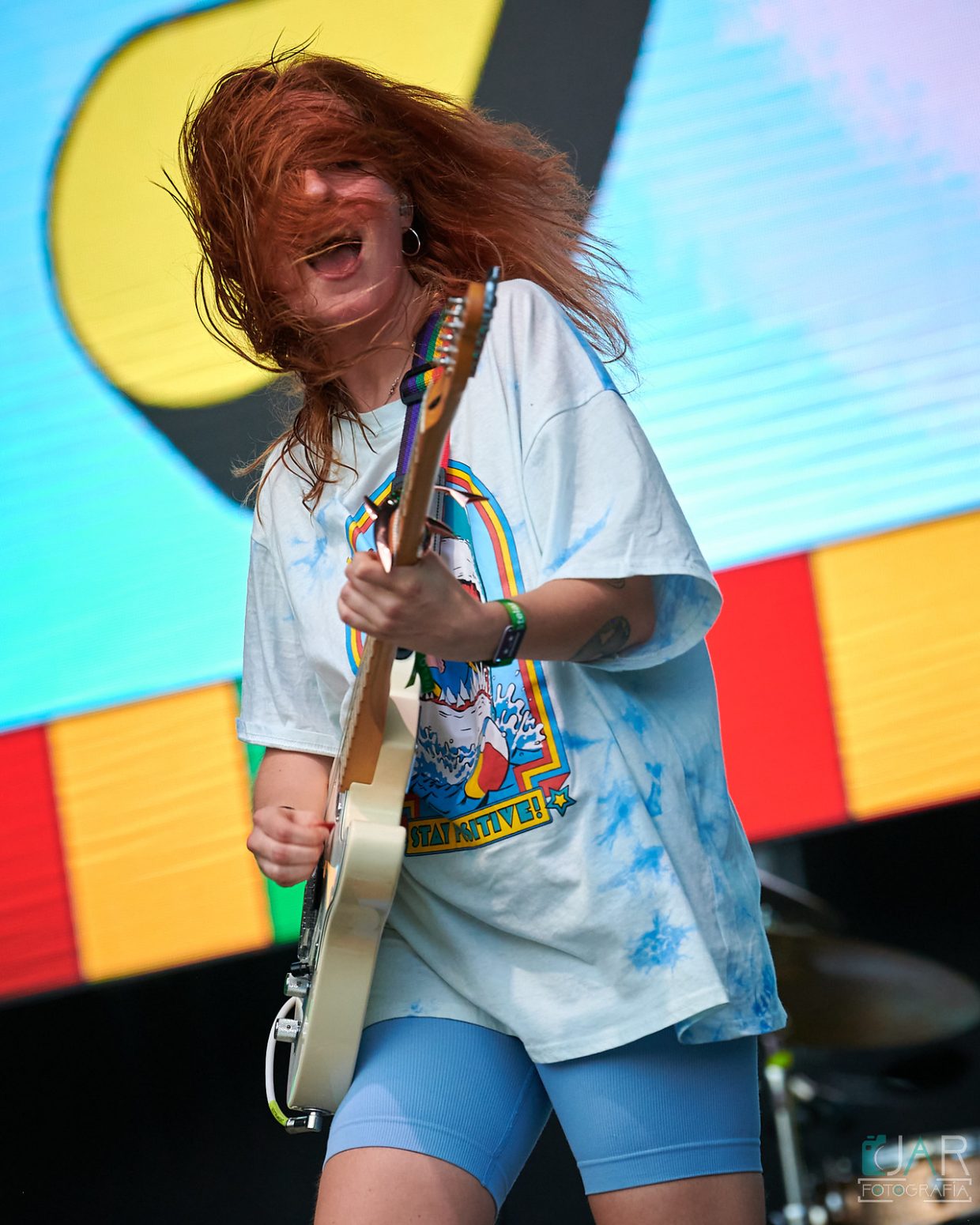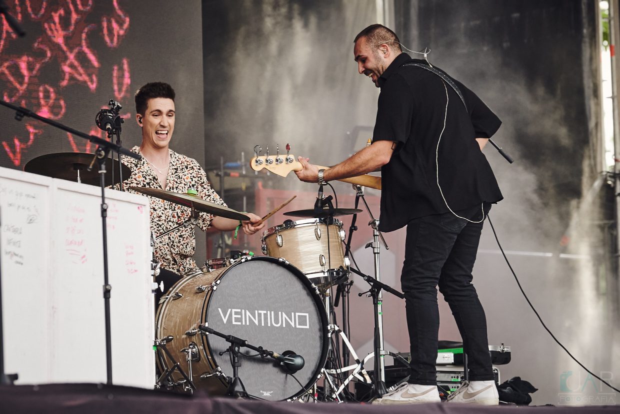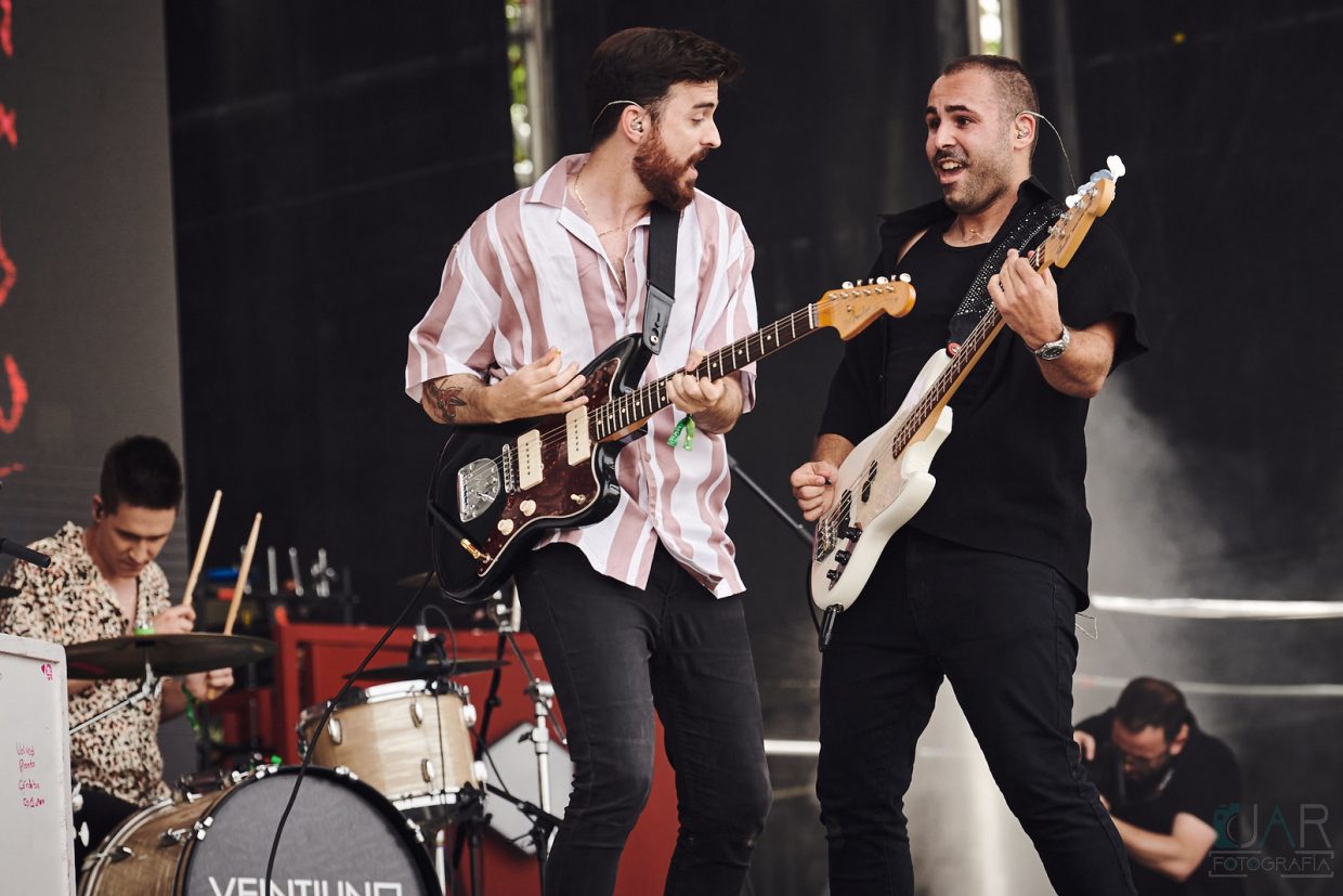 Segundo día, sábado, ya iba una preparada para lo peor, pero como dije antes, la organización se había puesto las pilas y había personal de sobra para atender en barra. No pudieron estar los chicos de La La Love You por enfermedad, así que el día dio comienzo con Veintiuno, otro de los descubrimientos del festival. Con el calor que hacía y el despliegue de energía de estos chicos sobre el escenario grande, lo dieron todo a pesar de que aún había poquita gente a esa hora de la tarde, tendrían que haber tocado más tarde porque para nosotros no era grupo para abrir el segundo día de festival, merecían tener más público.