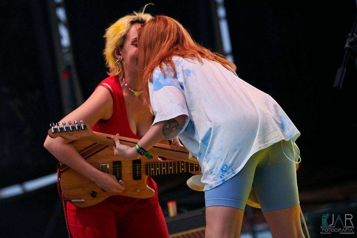 Los siguientes fueron Miss Caffeina, a los cuales teníamos muchas ganas de ver en directo de nuevo, y no defraudaron nada con la puesta en escena de su «Año del Tigre», podemos decir que cuando acabó su actuación nos miramos con cara de incrédulos diciendo: «peeeroo, ¿ya ha terminado? No puede ser». Brutal concierto, si señor.