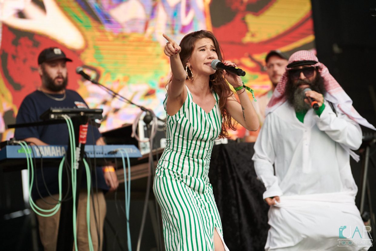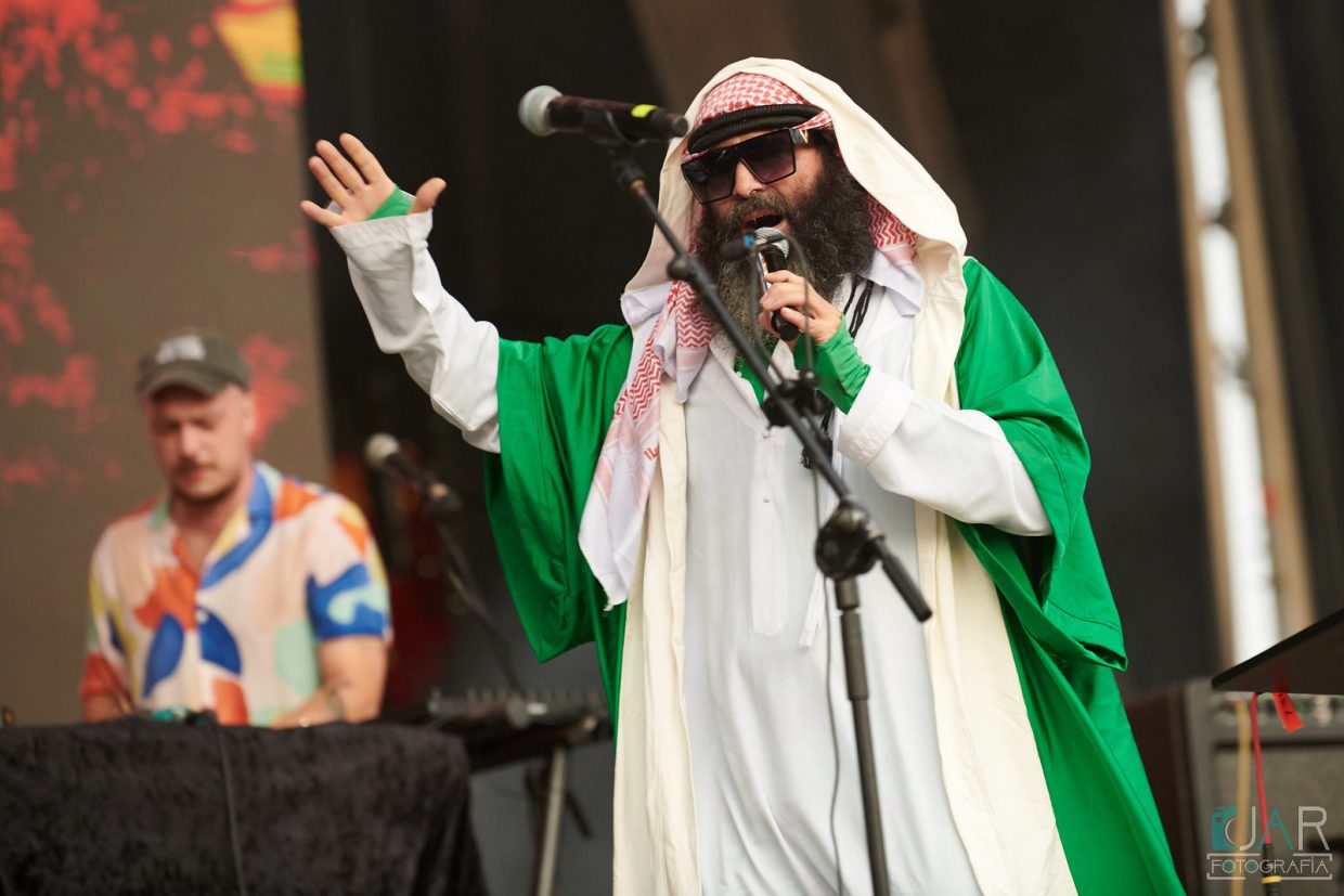 Como pura energía fue la vivida delante del escenario donde tocó Califato 3/4, a pesar de haber regado el recito, Califato consiguió volver a levantar la nube de polvo bajo los pies del personal dándolo todo.